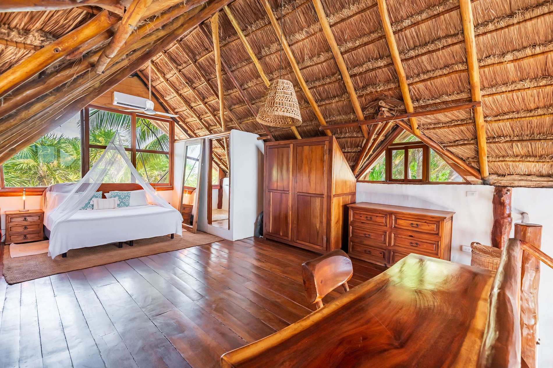 It’s important to note that the air conditioning is not designed to cool the entire palapa, as this is not possible given the property’s sustainable design. Unlike a fully enclosed home in the city, this space embraces an open, eco-conscious approach to comfort.