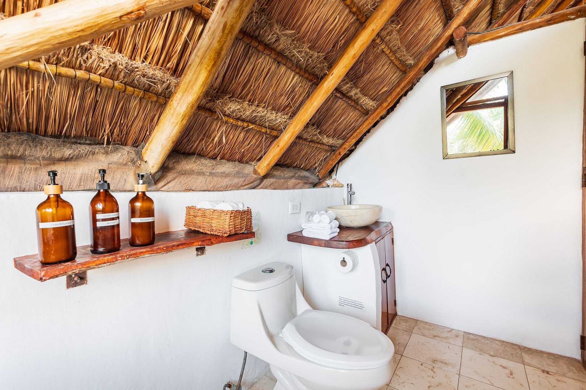 ⁓ Nuestras palapas, construidas con materiales renovables combinan elementos de hormigón y madera que permiten un flujo de aire constante, mantienen un ambiente fresco incluso en los días más cálidos. Los techos de hojas entrelazadas de palma real y coco no solo añaden autenticidad, sino que también crean un espacio que armoniza perfectamente con la exuberante naturaleza circundante, captando el encanto de una arquitectura que ha cautivado a México durante siglos, manteniendo vivo el legado de las culturas indígenas con su diseño sencillo y efectivo.